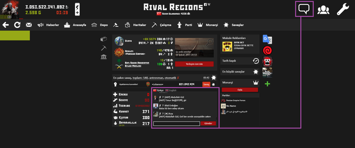 No Rival Regions, toda nação possui seu próprio painel de chat.