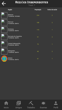 Um dos fatores mais básicos do jogo é justamente a qualidade das regiões, estas que podem ser avaliadas levando em conta vários fatores, o mais importante e visível são os índices de Saúde, Educação, Militar e o Desenvolvimento. Tais índices podem ser encontrados na seguinte janela: