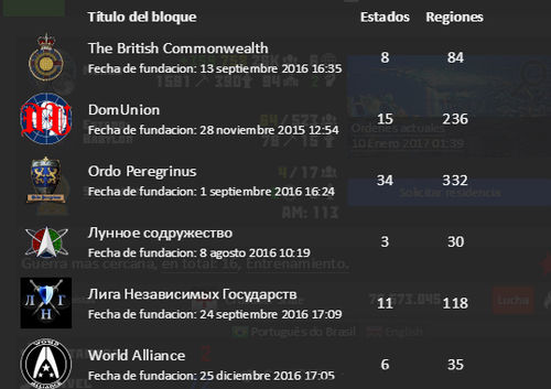 To join an existing bloc requires the application of state leader, which then will be voted for by other leaders in this bloc. States from the same bloc can't declare wars to each other.