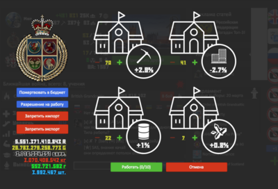 У каждого Государства в игре есть несколько институтов, дающие бонусы в различных сферах. Каждый игрок может работать в любых институтах, тем самым повышая бонус.