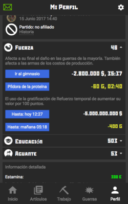 Habilidades - las principales habilidades del jugador. Afectan a muchos de los aspectos del Rival Regions.